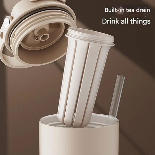 De brede bekermond is handig om direct te drinken, de kleur van de drank is gemakkelijk waar te nemen en ook gemakkelijk om ijsblokjes in te doen of te roeren voor reiniging. Sommige stijlen zijn uitgerust met afneembare filters om te voldoen aan de behoeften van het zetten van thee of koffiepoeder.