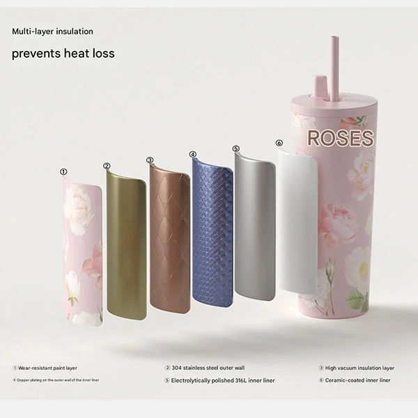 Geniet deze zomer elegant van je ijskoffie met de koudbewaarde koffiekop van Kudike! Het is gemaakt van duurzaam, lichtgewicht roestvrij staal van voedingskwaliteit, uitgerust met lekvrije bekerdeksels en koffierietjes, zodat u altijd en overal kunt genieten van de verfrissende smaak van ijskoffie of cold brew koffie. Deze innovatief ontworpen koffiekop is voortreffelijk vervaardigd en heeft een meisjesachtig kleurenschema, waardoor hij handig en praktisch is, zodat je altijd en overal van je favoriete gekoelde drankje kunt genieten.