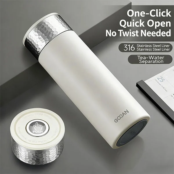 Het is niet het normale draaibare deksel, het is een nieuw ontwerp, je hoeft alleen maar op de bovenste kleine cirkel te drukken, zodat je het deksel er gemakkelijk af kunt halen.