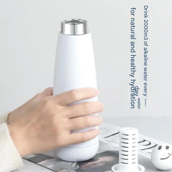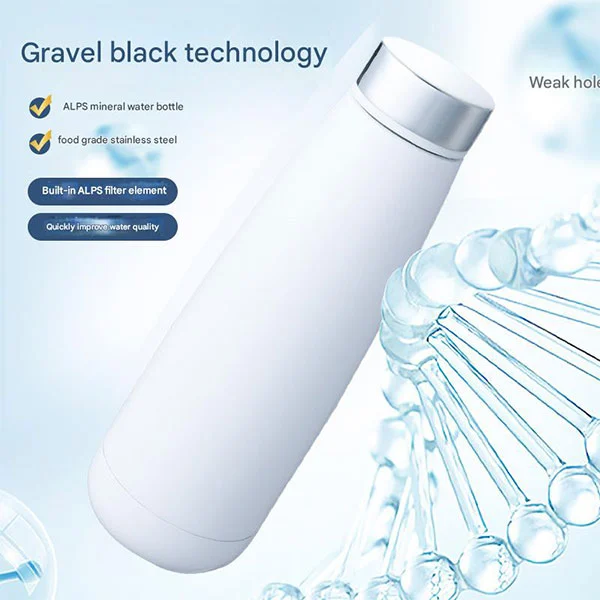 Waarom een waterzuiverende geïsoleerde beker? We hebben een thee -opbergruimte op het deksel ontworpen en daarin hebben we speciale milieuvriendelijke materialen geplaatst - Alpen Mineral Deeltjes. Alpendeeltjes zijn rijk aan elementen zoals aluminium, magnesium, ijzer, natrium en kalium. Deze elementen zijn gunstig voor de gezondheid en kunnen de zuurgraad en alkaliteit van water verbeteren. Wanneer u water drinkt, gaat het water door deze deeltjes voor zuivering en wordt hij enigszins alkalisch. Dit maakt uw drinkwater veiliger.