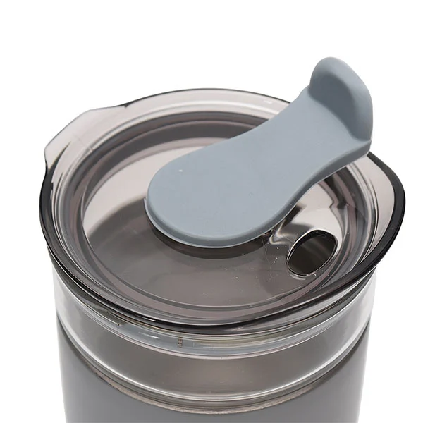 Emode-mok heeft een doorschijnende, push-in sipper-deksel dat past bij de stalen tuimelaar met of zonder de glazen binnenbeker en is