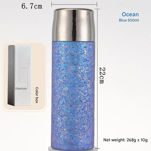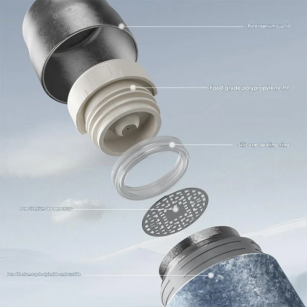 Klassieke theebrouwer, titaniumfles met een lekvrije beker gemaakt van puur titanium, zowel binnen als buiten, uitgerust met lekvrije deksels, pure titanium bekerdoppen en dubbellaags anti-verbranding!
